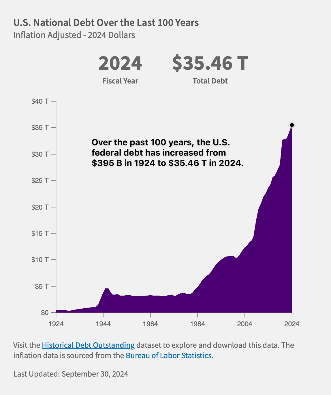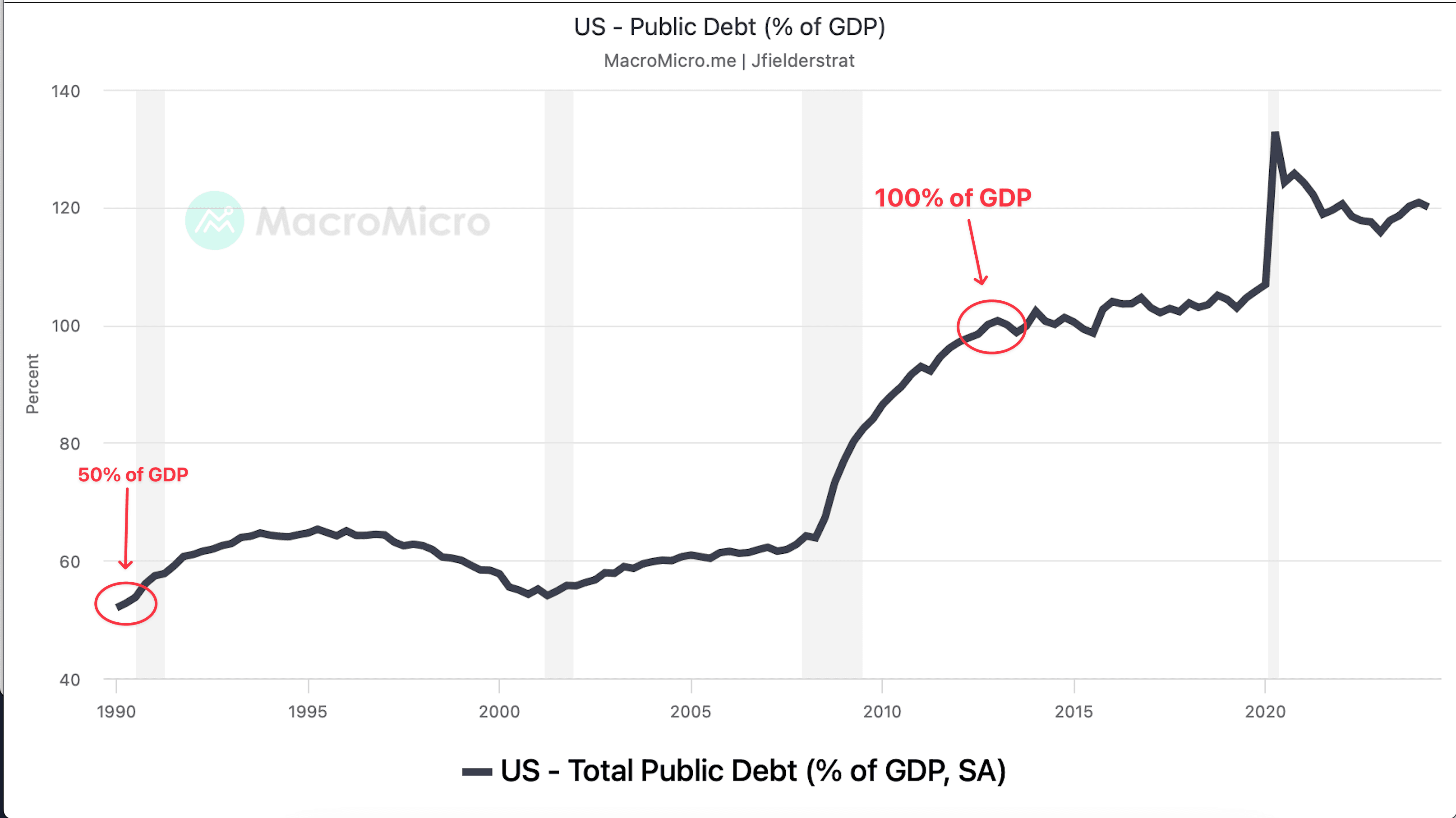 By the 2000s, U.S. government debt had risen to 50% of GDP. By 2015, it reached 100%. Imagine if your credit card debt grew faster than your income—it’s an unsustainable trajectory.