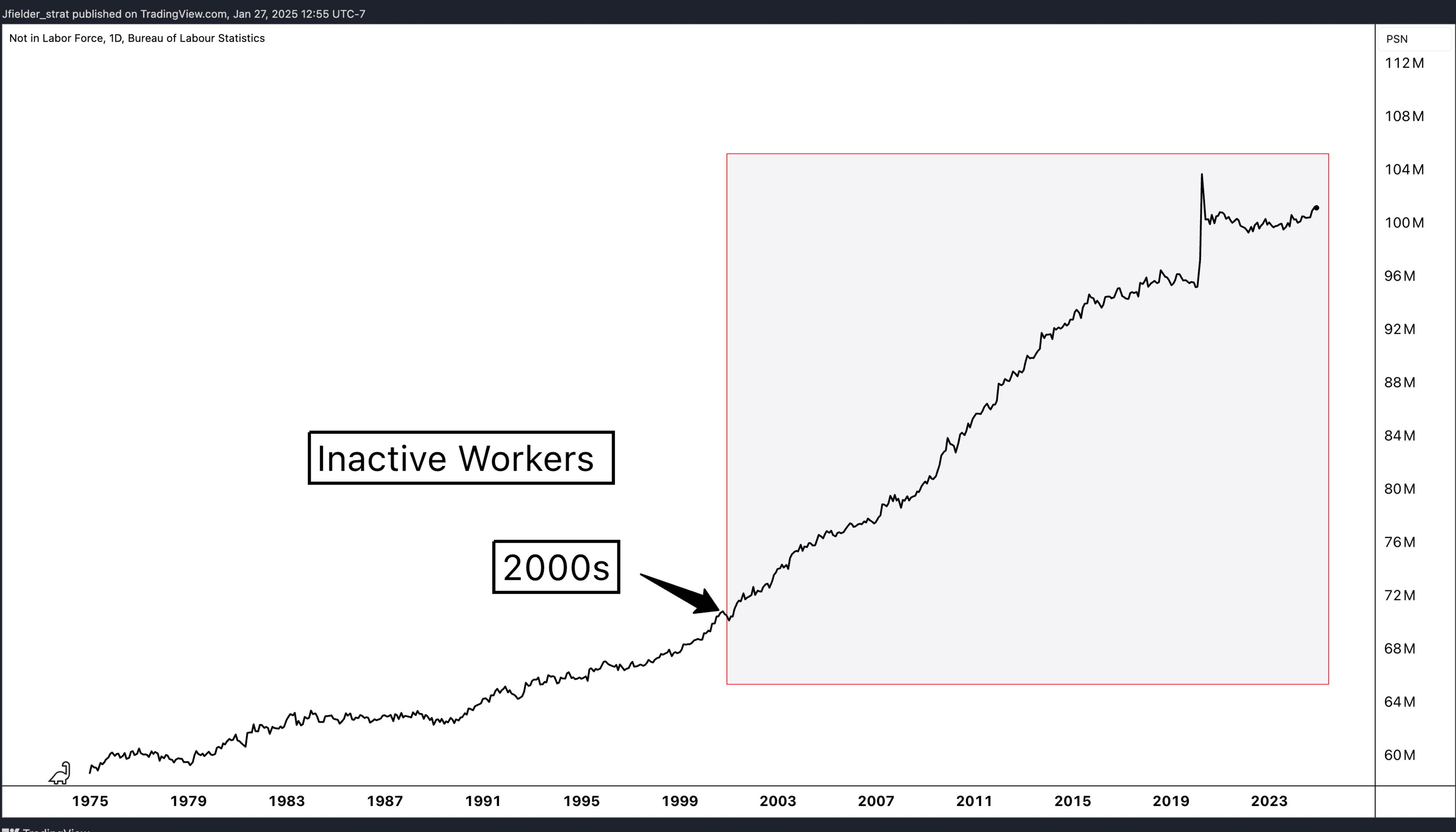 As the baby boomers began to retire in the 2000s, the number of inactive workers accelerated (Below).
