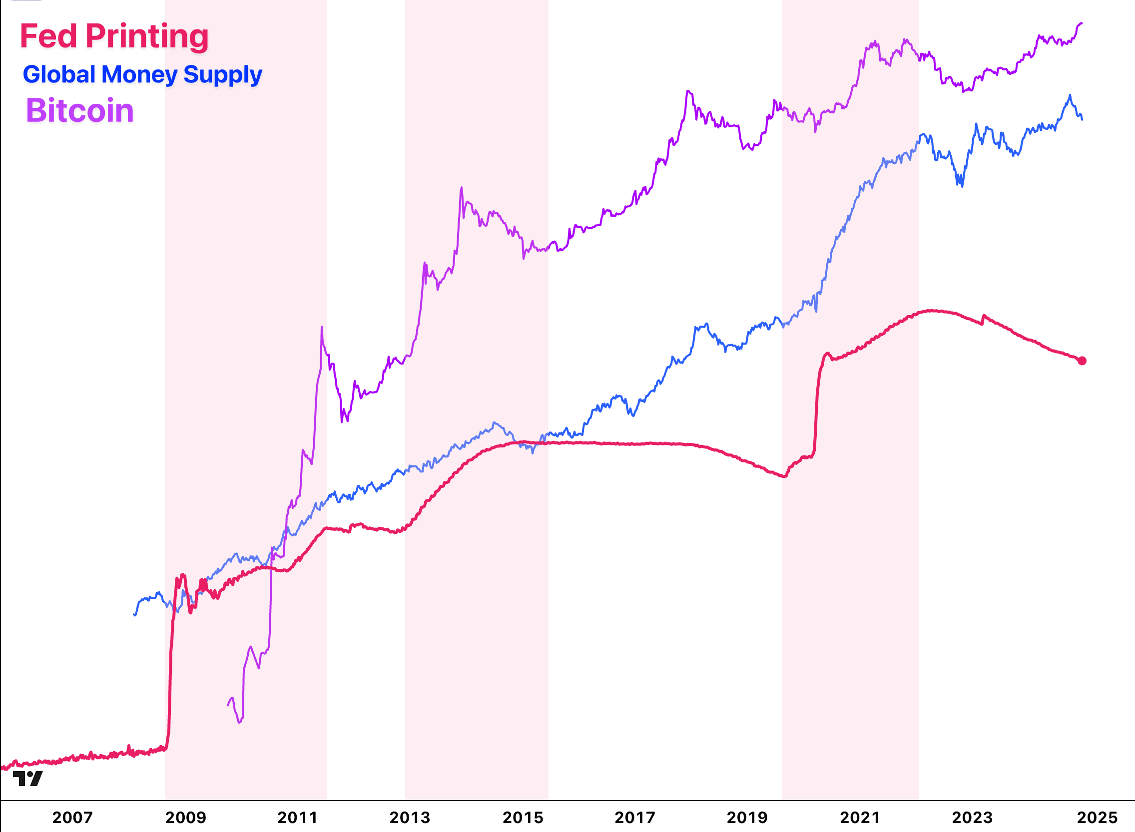 Liquidity acts as a powerful force behind market cycles. When central banks inject cash into the banking system, base money (also known as reserves) multiplies. An increase in base money enables banks to leverage or multiply the amount of available credit.